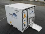 El contenedor refrigerado 10’RF es el contenedor estándar más pequeño disponible en el mercado. Es un contenedor nuevo que sólo ha realizado un viaje marítimo desde el fabricante. Mide 3 metros de largo y puede albergar cuatro europalets, con una carga máxima de 20.950 kg.